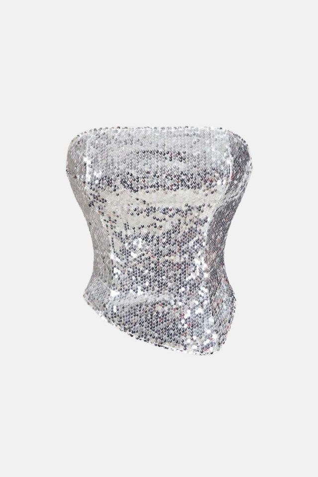Top tomara que caia todo trabalhado em paetê. Acabamento com forro interior para melhor conforto.